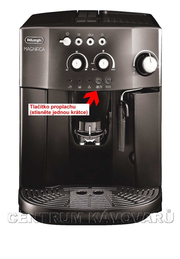 Při stisknutí tlačítka proplachu musí jít čistá voda jen přes výpust kávy!