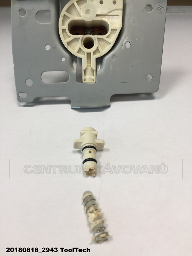 Ještě jsem s tím klepl a vypadl i ten vntřní díl - viz fotka. Nijak extra nedržel a uvnitř není kámen. Díval jsem se do manuálu a při odvápňovacím procesu píší, že voda začne vytékat z pěnovače a ne z výpusti kávy. Tak teď jsem z toho jelen-srnec-daněk :-o