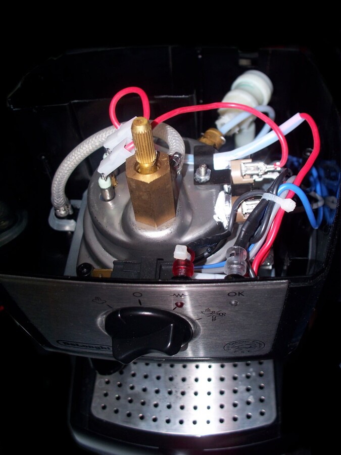 chyba bude ve špatném spoji některého komponentu. Je třeba odkrytovat víčko kávovaru a zjistit únik vody viz foto.