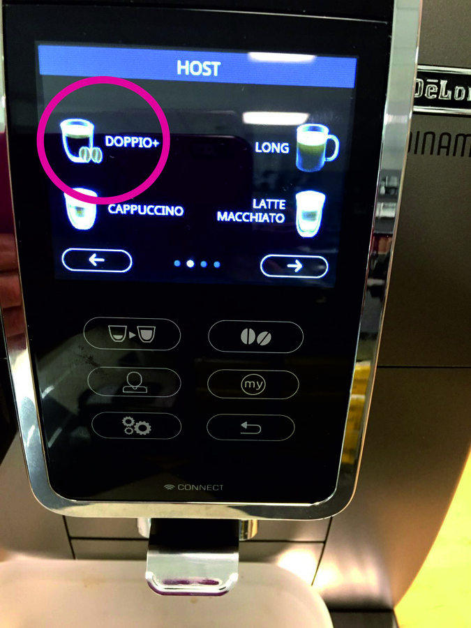 Silnou kávu si můžete připravit volbou Doppio, kde mlýnek mele extrémně dlouho.