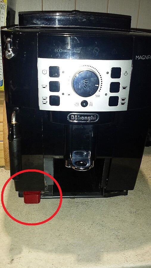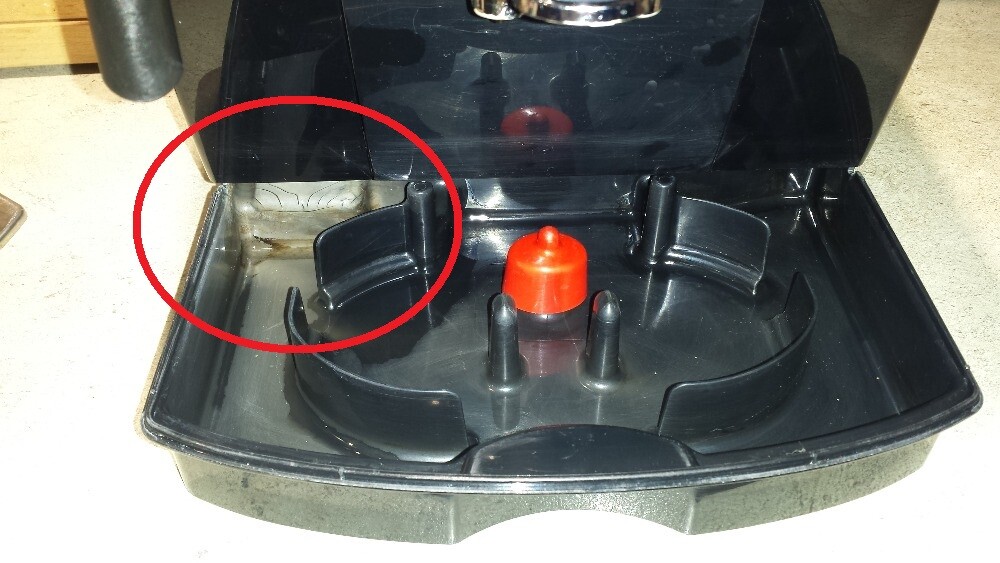 Dobry den mam problem na kavovaru Delonghi Mafnifica ECAM22.110 pri plněni šálku pres trysky tak mi cast vody proteka do zachytne vanicky na foto je to oznaceno v cervenem krouzku dekuji za radu