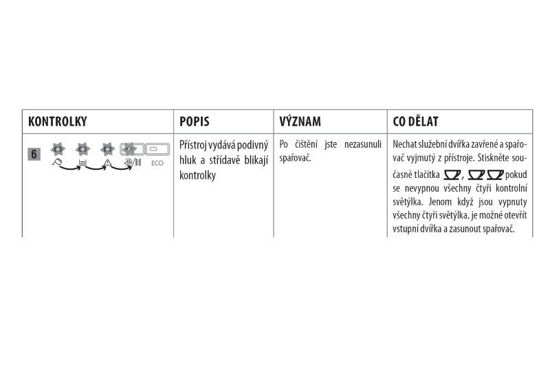 můžete specifikovat, které kontrolky vám na kávovaru blikají. Spodní, či horní řada?