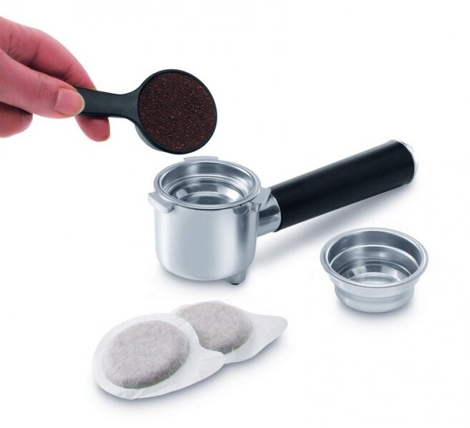 * Speciální profesionální držák filtru na mletou kávu a pody pro přípravu 1 či 2 šálků (2 filtry)