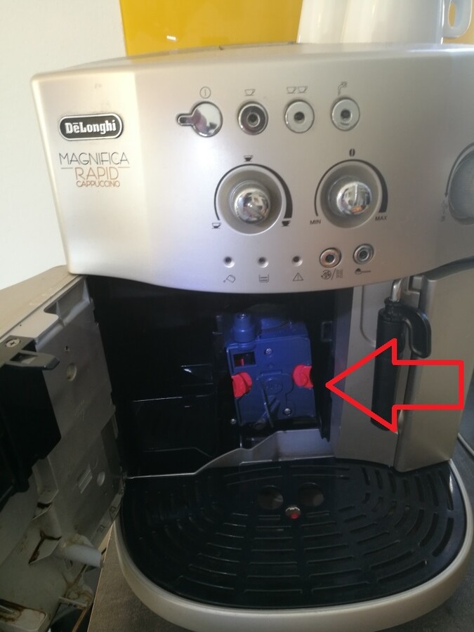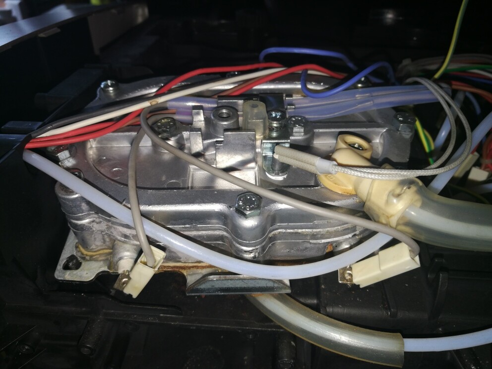 Dobrý den, na výměnu topení bych si asi troufl, podle součástek tvaru a hadiček bych si tak tipl, že se jedná o součástku tvaru podkovy na zadní stěně, a nebo oválná součástka pod nahřívačem šálků?