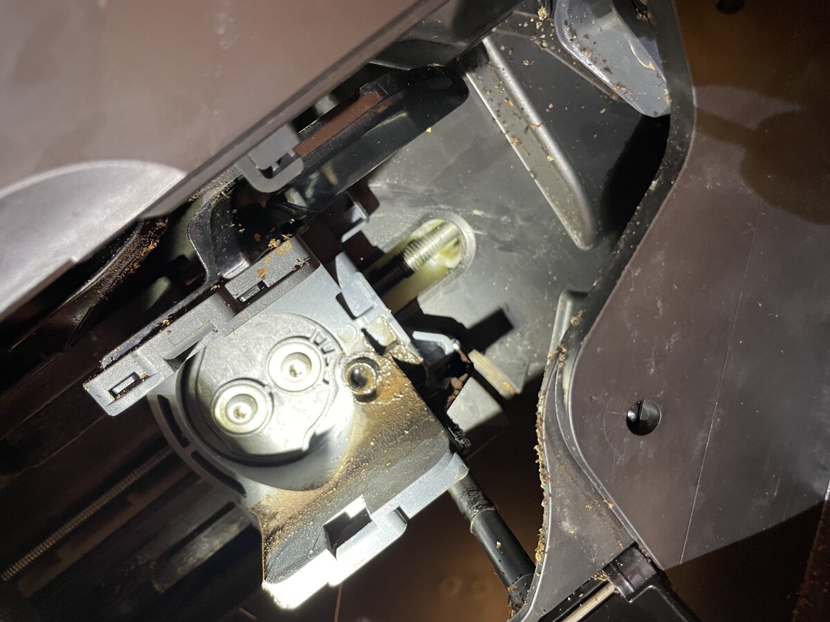 A aby toho nebylo máto, tak pravidelné čištění spařovače má za následek, že těsnění mezi spařovací jednotkou a troleje pojezdu spařovací jednotky přestane těsnit. Viz obrázek.