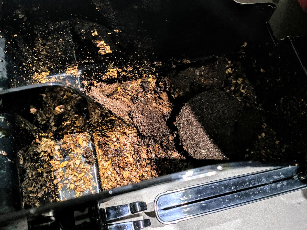 Kávovar mi mele příliš hrubou kávu, ale když dám předem umletou kávu tak bez problémů viz foto kde jsou v nádobě na sedlinu obě dvě situace.