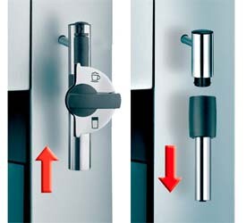 B) s regulací mléčné pěny - s ovládacím kolíkem - vhodné pro přípravu Latte, kde potřebujete přípravu bez mléčné pěny. Tato tryska je náročnější na pravidelnou údržbu.