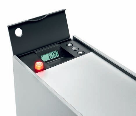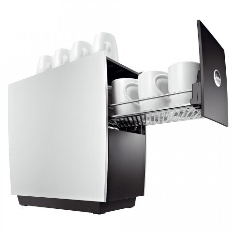 Ohřívač šálků je vybaven dvěma topnými tělesy, které šálky udržují v teplotě přibližně 55 °C. Ohřívač vyniká kompaktním designem a jeho kapacita je optimální pro domácí použití – pojme šálky o průměru až 90 mm a výšce až 110 mm. Oceníte i moderní odpružený systém, který zaručuje tiché zavírání obou zásuvek. Čas zapnutí i vypnutí ohřívače si můžete naprogramovat podle svých potřeb.