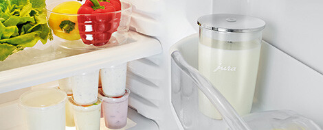 Hadička na mléko je připojena ke krytu a příprava tak může začít. Jednoduché spojení zajistí, že mléčná cesta je dokonale čistá. Vnější oblast hadičky na mléko, která bývá často špinavá, se nikdy nedostane do přímého kontaktu s mlékem.
