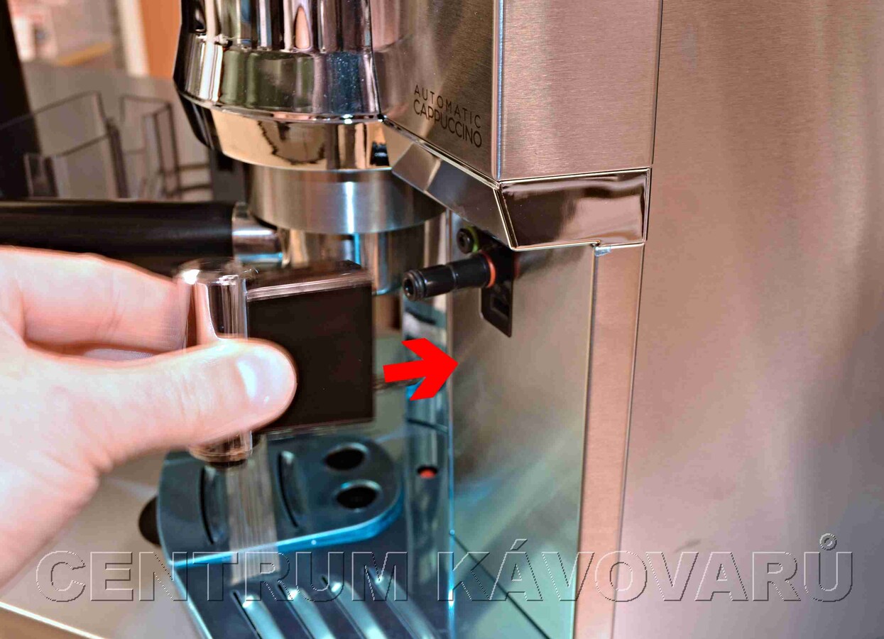 1) naplnit zásobník na vodu - čistou vodou - bez bublinek nebo jinak upravenou. Zásobník zasuňte až nadoraz dovnitř kávovaru