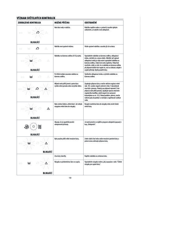 Po přepnutí a vhození mleté kávy, zmáčknutí tlačítka na 1 šálek, se zobrazí vykřičník a kontrolka na vysypání odpadu.