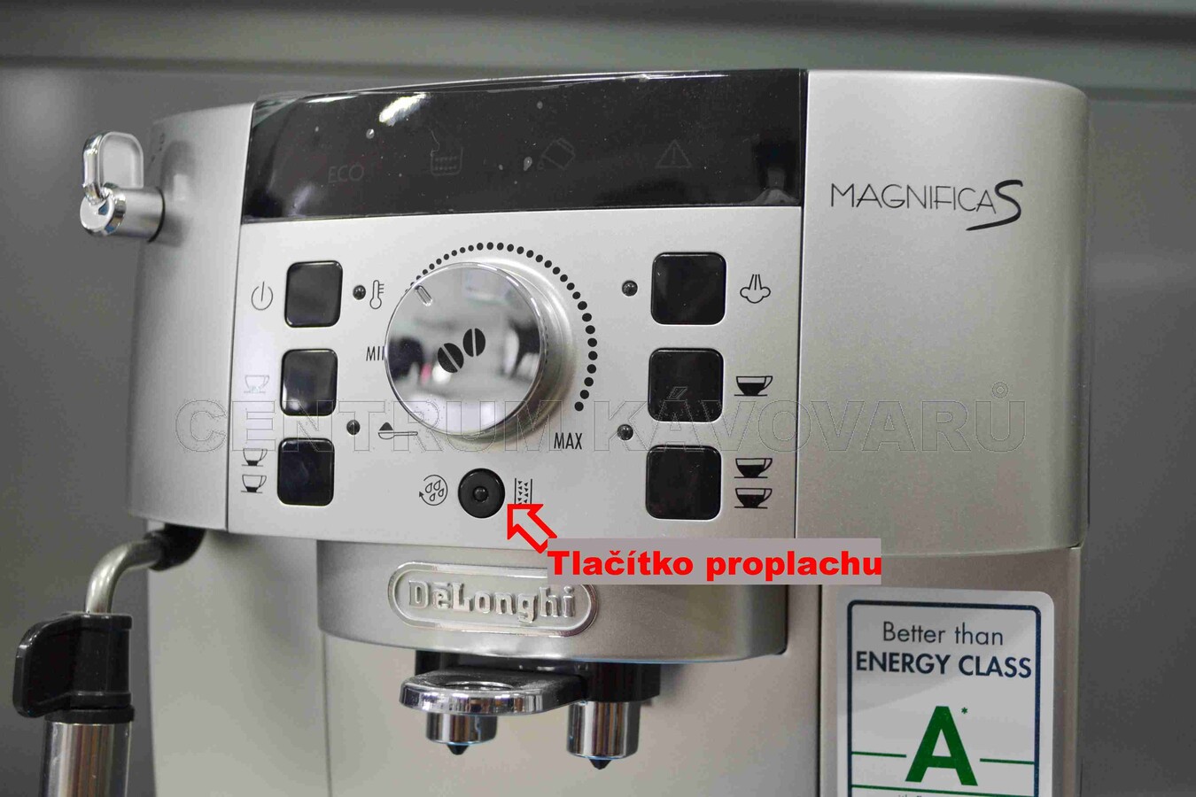propláchnout kávovar tlačítkem proplachu (viz obrázek). Spařovací jednotka se propláchne od zbytků kávy a bude připravena pro další přípravu kávy.