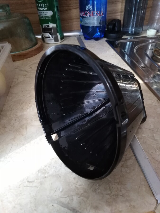 obracím se na Vás s dotazem, zda lze ještě někde sehnat plastovou krytku ze zásobníku na mletou kávu (viz 2x foto) v mém stařečkovi Kombi De Longi BCO410, kterou se mi zřejmě podařilo vyhodit s použitou spařenou kávou. Kávovar sice překapává i bez ní, ale dochází k ucpávání odtoku. Jelikož jsem s kávovarem (s překapávačem i presovačem) řadu let velmi spokojená, jsem v nezbytném případě ochotná zakoupit i kompletní zásobník.