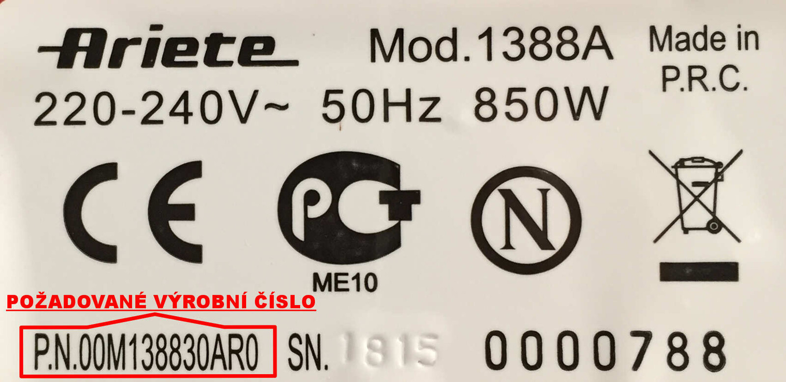pro správnou páku je třeba uvést výrobní číslo, které je uvedeno ze spodní strany kávovaru.