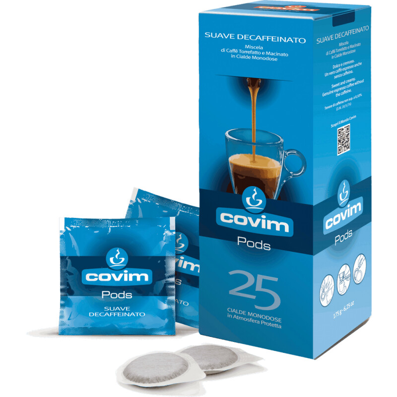 Italská káva Covim Suave je bezkofeinová káva porcovaná v tzv. E.S.E. tabletách. E.S.E. tablety známe také jako „pody" nebo „pods". Káva připravená za použití podů je velmi snadná. V každém podu je přesně odměřená a optimálně namletá káva, která je již i strojově stlačena.