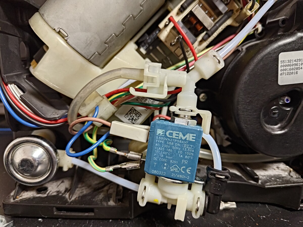 Dobrý den, trubičky jsou průchozí. Měnila jsem ten spodní 3-cestný ventil, protože umřelo čerpadlo a nejspíš ho vzalo s sebou. Jak jsem zmiňovala, tak při proplachu funguje správně. Jak jste psal o vstupním ventilu infuzoru, tak na ten se zítra kouknu popřípadě vyčistím. Přikládám foto toho, co jsem měnila a kde jsem měřila napětí. Protože nevím, ale jen tipuji, jaké napětí tam má či nemá jít, tak jsem usoudila, že na výrobu horké vody a páry by tam napětí jít nemělo - tak jak to je při proplachu. Na starý ventil sice napětí šlo, ale jelikož se neotevíral, tak veškerá voda šla jedinou volnou cestou - nahoru do okruhu a horkou vodu a páru a bylo to vlastně jediné, co kávovar vyprodukoval.