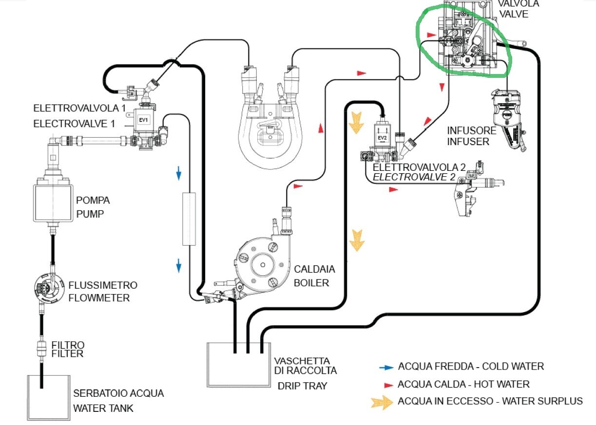 Dobrý den, po výměně čerpadla a spodního ventilu kávovar nefunguje správně. Původní ventil se neotevíral při přívodu napětí - neteklo kafe, ale pára a horká voda fungovala. Nový ventil se otevírá jak má, nicméně: Při proplachu nejprve jde do ventilu 230V, ventil se otevře, propláchne okruh na "kávu", poté napětí klesne na 0V, ventil se uzavře a proplachuje okruh na horkou vodu - což funguje jak má. Problém je, že když dám horkou vodu nebo páru, tak do ventilu jde stále napětí - tudíž je otevřený a kávovar mi hlásí ať doplním okruh. Mou otázkou tedy je, kde se stala chyba a proč je ventil pod napětím popřípadě na co se zaměřit a kde to opravit. Předem děkuji za radu.