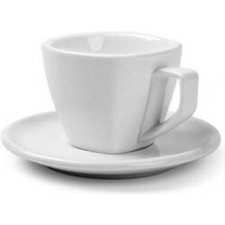 Silnostěnný čtyřhranný keramický šálek s podšálkem určený pro cappuccino, obsah 250 ml