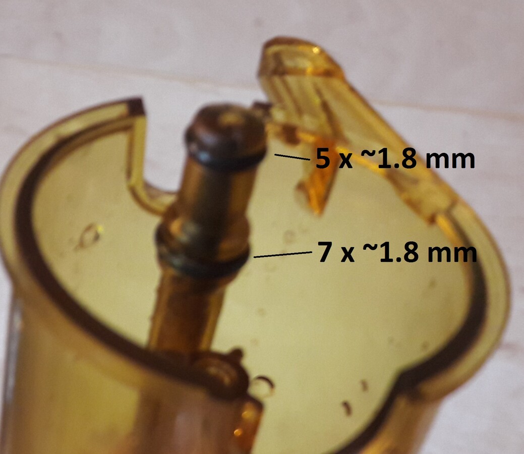 - těsnění "přepadu" na výrobníku páry (1x 5x1,82mm a 1x 7x1,82mm - vnitřní průměr)