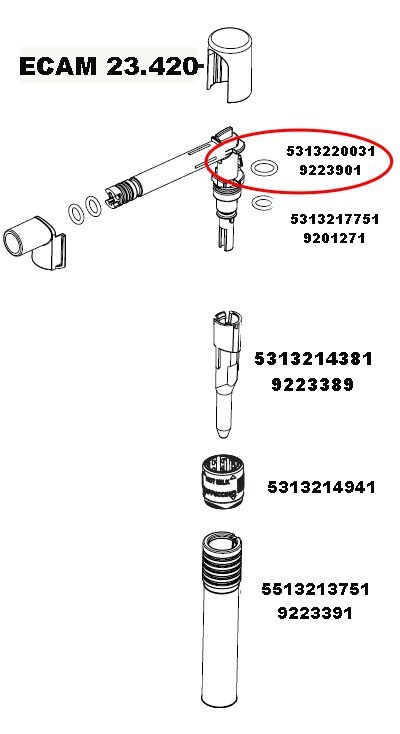 Dobrý den, kávovar DeLonghi ECAM 23.420 nám přestal napěňovat mléko, protože mezi "kolenem" a stříbrnou násadou trysky uniká pára. Všechny tři o-ringy (9223901, 9201271 i ten na černé vnitřní trysce) jsem vyměnil za adekvátní dle velikosti (ne originál, samozřejmě rozdíl v desetinách milimetru není vidět okem, šuplerou jsem nekontroloval), ale problém přetrvává. Myslíte, že pomůže objednat originál přetěsnění